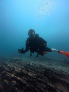 Vicki dives in the Galapagos! Photo by a fellow diver.