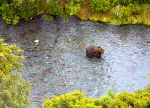 The rotund brown bear fishing for spawning salmon is one of the most iconic symbols of Alaska. These coastal brown bears are among the most powerful land mammals in the world and a driving force for Alaska’s tourism industry.