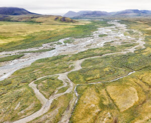 Braided channels of a river flow north from the Brooks Range across the Arctic coastal plain. Photo by Lisa Hupp, USFWS.