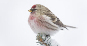 Common Redpoll perched. Photo by Milo Burcham.