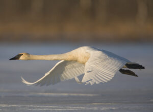 Trumpeter Swan takes off. Photo by Milo Burcham.