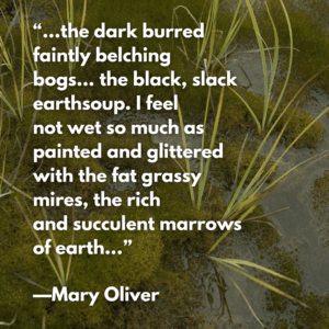 In Mary Oliver’s poem, we are immersed in the primordial nature and richness of the wetlands. A world that is both difficult to traverse and yet profoundly life-giving.
