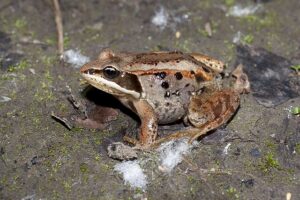 Wood frog emerges after a long winter. Photo by Kristof Zyskowski.