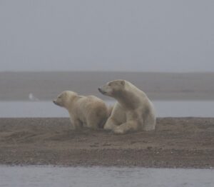 Sow and cub on the shore of the Southern Beaufort Sea. Photo by Bridget Psarianos.