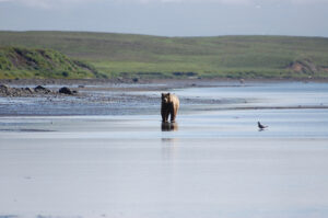 Brown bear in Kinzarof Lagoon in Izembek. Photo by Kristine Sowl.